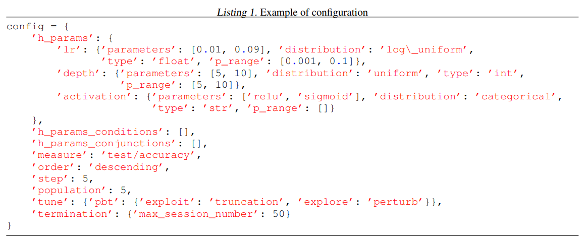 이 문제를 해결하기 위해 몇 가지 하이퍼 파라미터 최적화 방법이 제안되었는데, 이러한 방법들은 강한 최종 성과, 병렬 처리, 컴퓨팅 리소스 효율성 측면에서 성능을 크게 향상시키는 early stopping, 그리고 최적화 시간 등과 같은 많은 장점을 가지고 있다. 하지만 그러한 방법을 이용하기위해서 사용자는 자신의 시스템이나 코드로 구현해야하며, 소스코드가 제공되어도 구현에 상당한 시간과 노력이 필요하다.