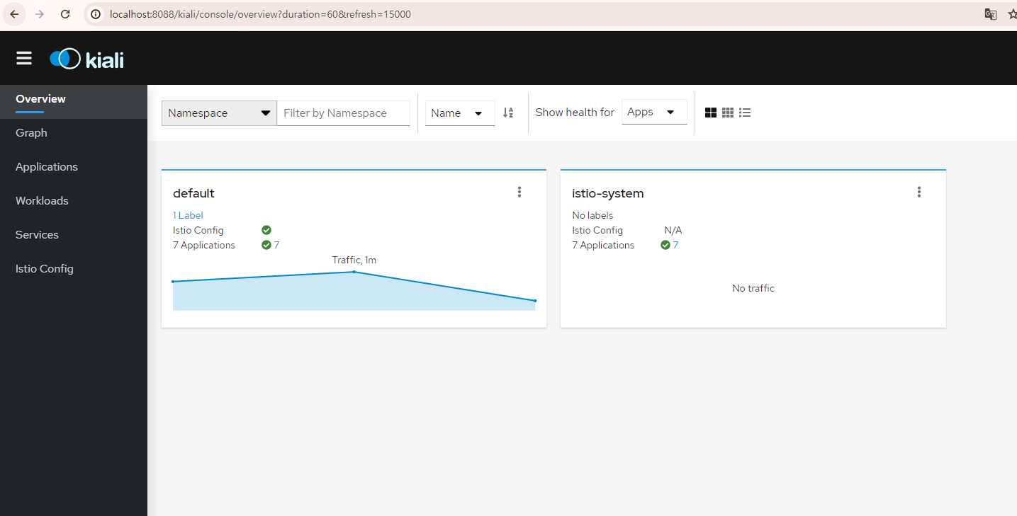 $ kubectl -n istio-system port-forward service/kiali 8088:20001