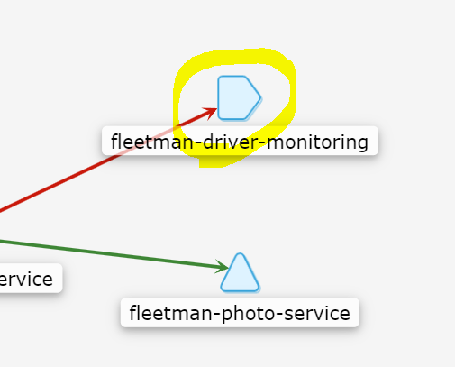 driver-monitoring 노드는 다른 서비스들처럼 △가 아닌 다른 모양이다. △는 k8s object인 Service를 의미하고, driver-monitoring는 Istio의 object인 ServiceEntry 이다. 외부로 나가는 네트워크임을 알 수 있다.