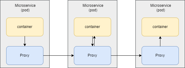 Istio는 서비스 메시의 구현체 중 하나이다. 이스티오가 실제로 서비스 메시를 구현한 방식은 pod에 proxy container를 두는 것이다.