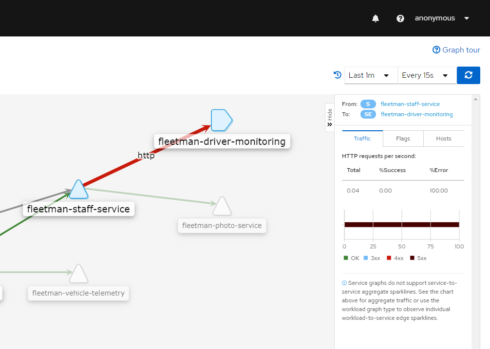 위 그래프를 통해 staff-service 가 driver-monitoring을 호출할 때 문제가 생겨 staff-service의 기능이 저하되었음을 알 수 있다.