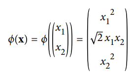 - 다음 식은 적용하고자 하는 2차 다항식 매핑 함수 ϕ