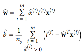 - 이식을 최소화하는 벡터 alpha hat을 찾았다면 아래 식을 사용해 원 문제의 식을 최소화하는 w hat과 b hat을 계산할 수 있음
