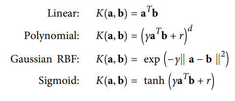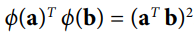 - 원래 벡터 a와 b에 기반하여 점곱 ϕ(a)^Tϕ(b)를 계산할 수 있는 함수