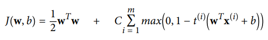 온라인 SVM 분류기를 구현하는 한가지 방법은 원 문제로부터 유도된 다음 식의 비용함수를 최소화하기 위한 경사하강법을 사용하는 것(ex. SGDClassifier)