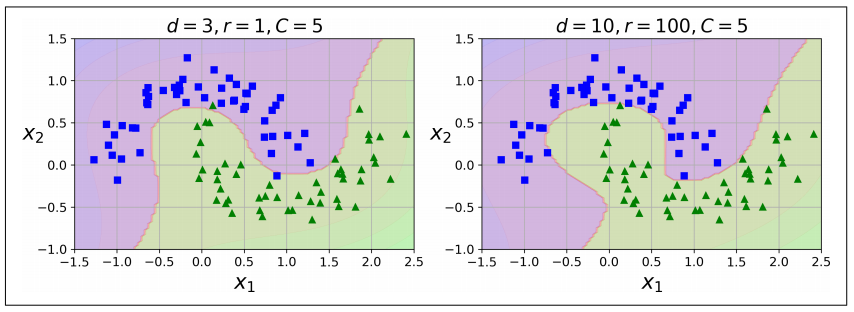 - 오른쪽은 10차 다항식 커널을 사용함
