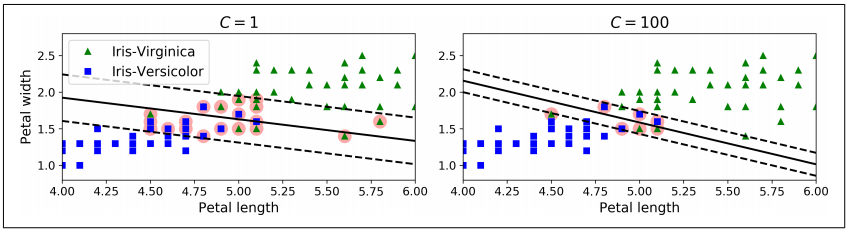 소프트 마진 SVM은 하드 마진과 달리 C라는 하이퍼파라미터를 가짐