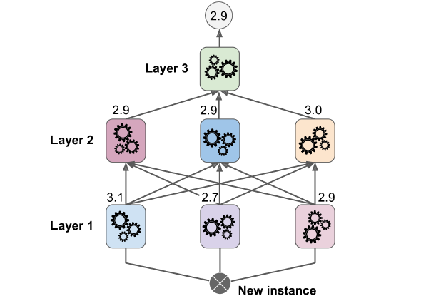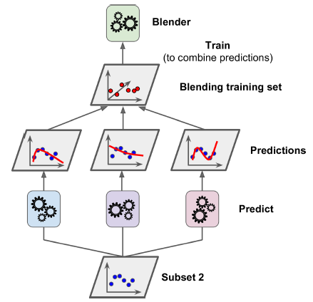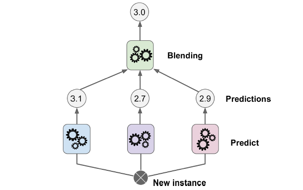 - 마지막 예측기(블렌더 또는 메타 학습기)가 이 예측을 입력으로 받아 최종 예측을 만듦