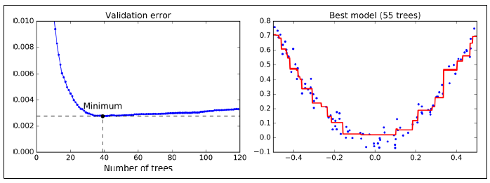 gbrt_best = GradientBoostingRegressor(max_depth=2, n_estimators=bst_n_estimators, random_state=42)