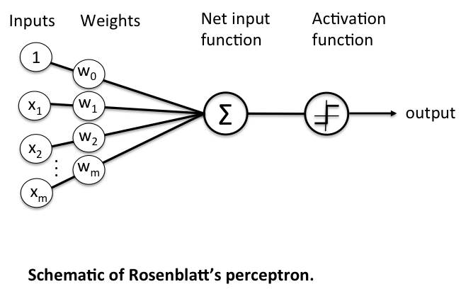 가장 간단한 인공 신경망 구조 중 하나로, 1957년 프랑크 로젠블라트가 제안