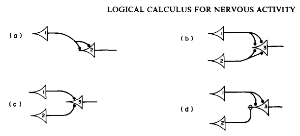 - 이런 간단한 모델로 인공 뉴런의 네트워크를 만들어 어떤 논리 명제도 계산할 수 있음