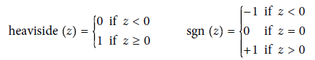 - 퍼셉트론에서 가장 널리 사용되는 계단 함수는 헤비사이드 계단 함수 (이따금 부호 함수를 사용하기도 함)