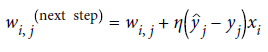 wi,j 는 i번째 입력 뉴런과 j번째 출력 뉴런 사이를 연결하는 가중치