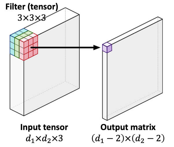 - 입력 이미지는 컬러 채널마다 하나씩 여러 서브 층으로 구성될 수 있음