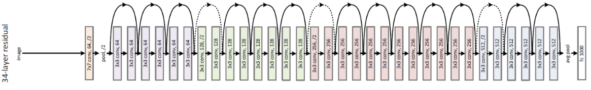 - ResNet-34는 34개 층으로 이루어진 ResNet으로