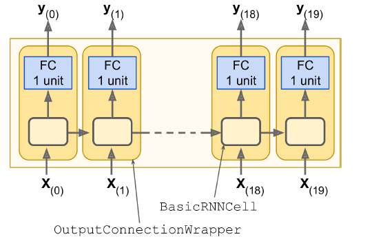- 단변량 시계열을 예측하기 때문에 하나의 유닛이 필요하고 이는 타임 스텝마다 하나의 출력을 만들어야 한다는 뜻