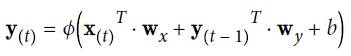 - 하나는 이전 타임 스텝의 출력 y(t-1)을 위한 것 -> 가중치 벡터 wy