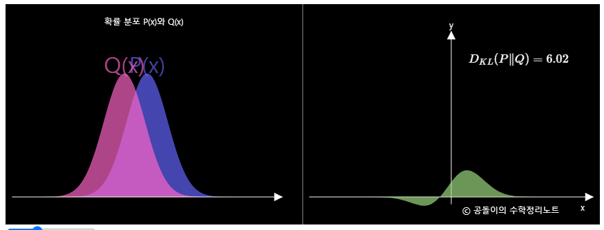 두 개의 이산 확률 분포 P와 Q가 주어졌을 때, 이 두 분산 사이의 KL 발산 DKL(P||Q) 계산